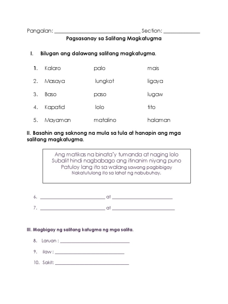 Ang mga sumusunod na halimbawa ng mga salitang maylapi ay nakaayos na paalpa-beto. Mga salitang katunog ng lahat ay. Mga Salitang Magkatugma.